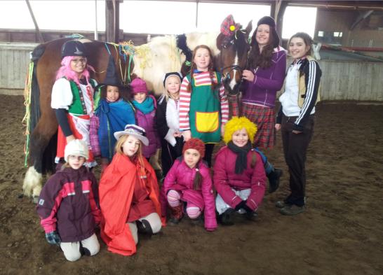 Trotz der eisigen Kälte und dem vielen Schnee waren wir fast vollständig und haben die Reithalle zum beben gebracht. Mit Spaß und jede menge Luftschlangen haben wir Spiele mit und ohne Pferd gespielt wobei das absolute Highlight darin bestand unser Voltipferd Jasper mit Girlanden und Kostümen aus der Kostümkiste zu verkleiden. Zum Schluss gab es, wie es sich an Karneval gehört, Schokoküsse und Brauseflummis, die die Mädels strahlend entgegen nahmen. 🙂